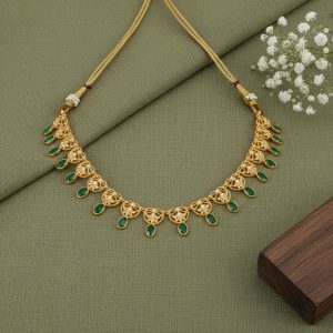 Classic South Indian Green Teardrop Gold Necklace for Women