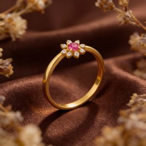 22kt Yellow Gold Peacock Grace Floral Accent Ring for Women