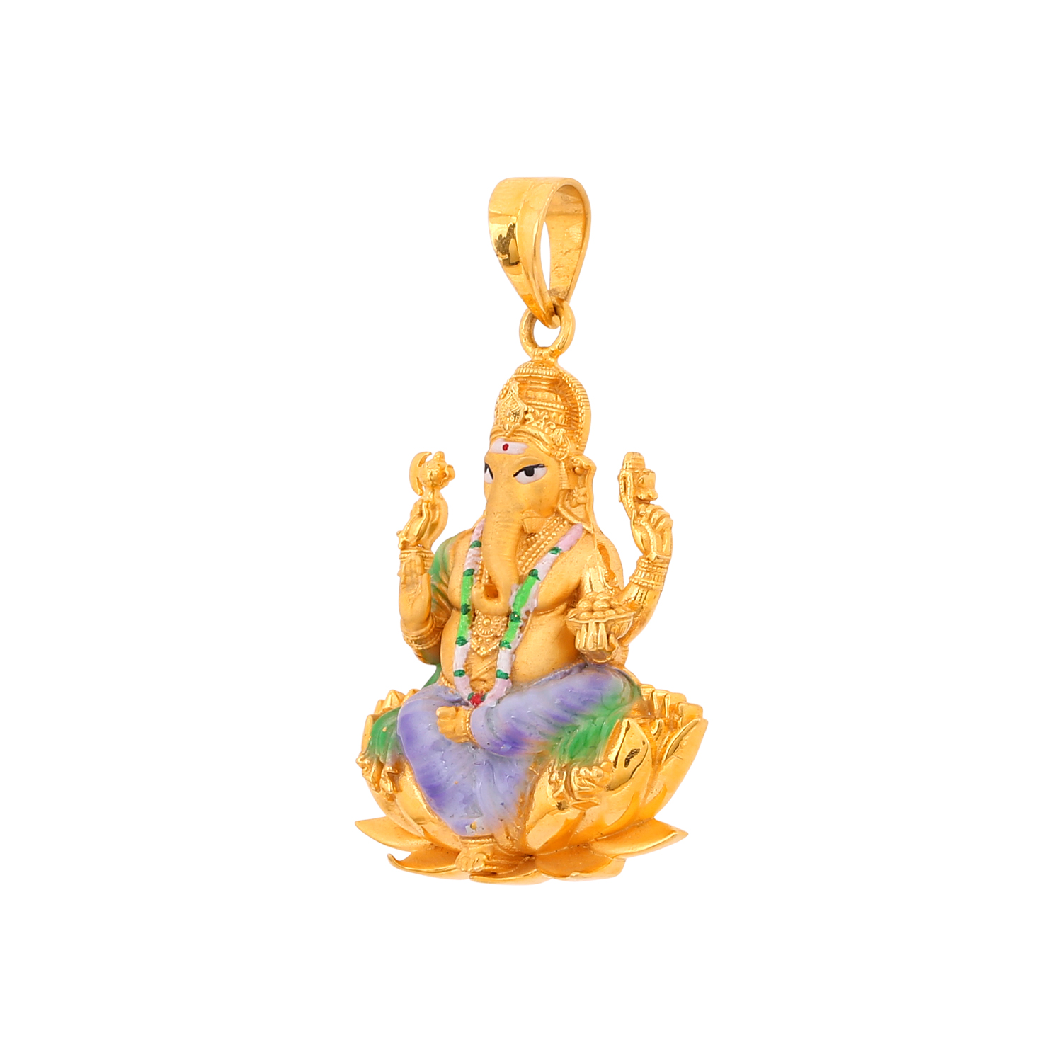 22 Karat Yellow Gold Auspicious Ganesha Colorful Lotus Base Pendant for Men