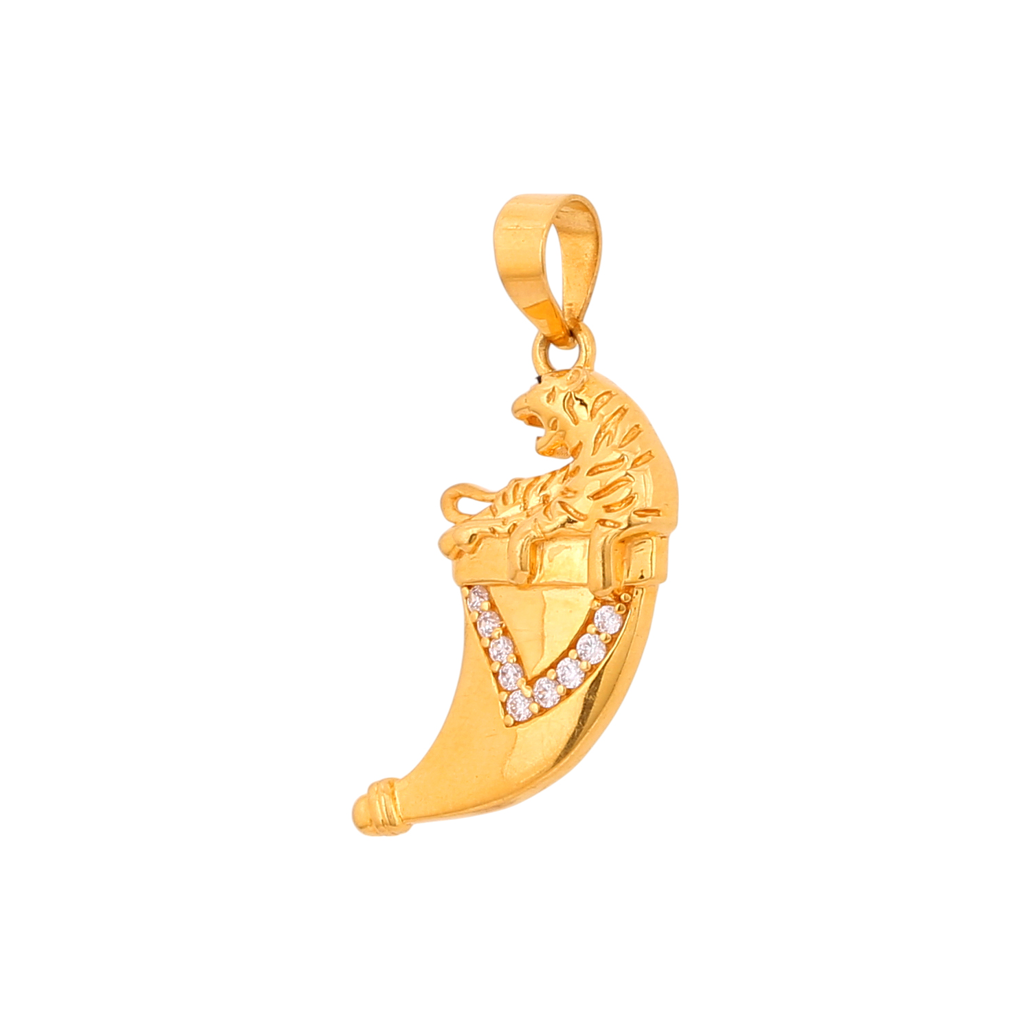 22KT Yellow Gold Ferocious Tiger Claw Diamond Studded Triangle Accent Pendant for Men