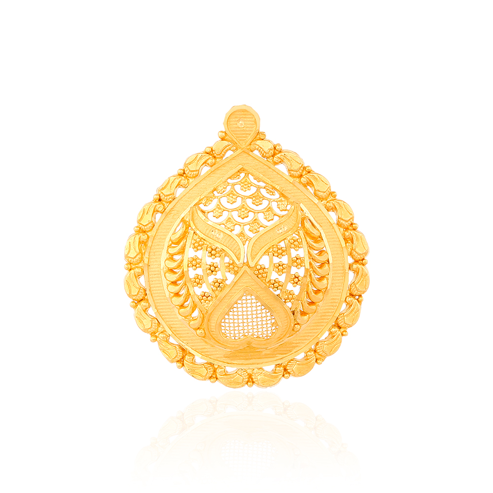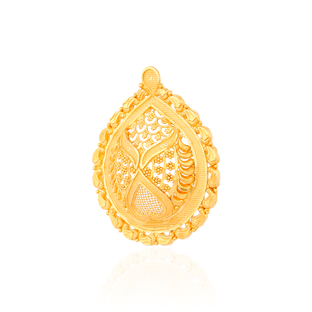 “22K Gold Heritage Paisley Filigree Flourish Pendant For Women