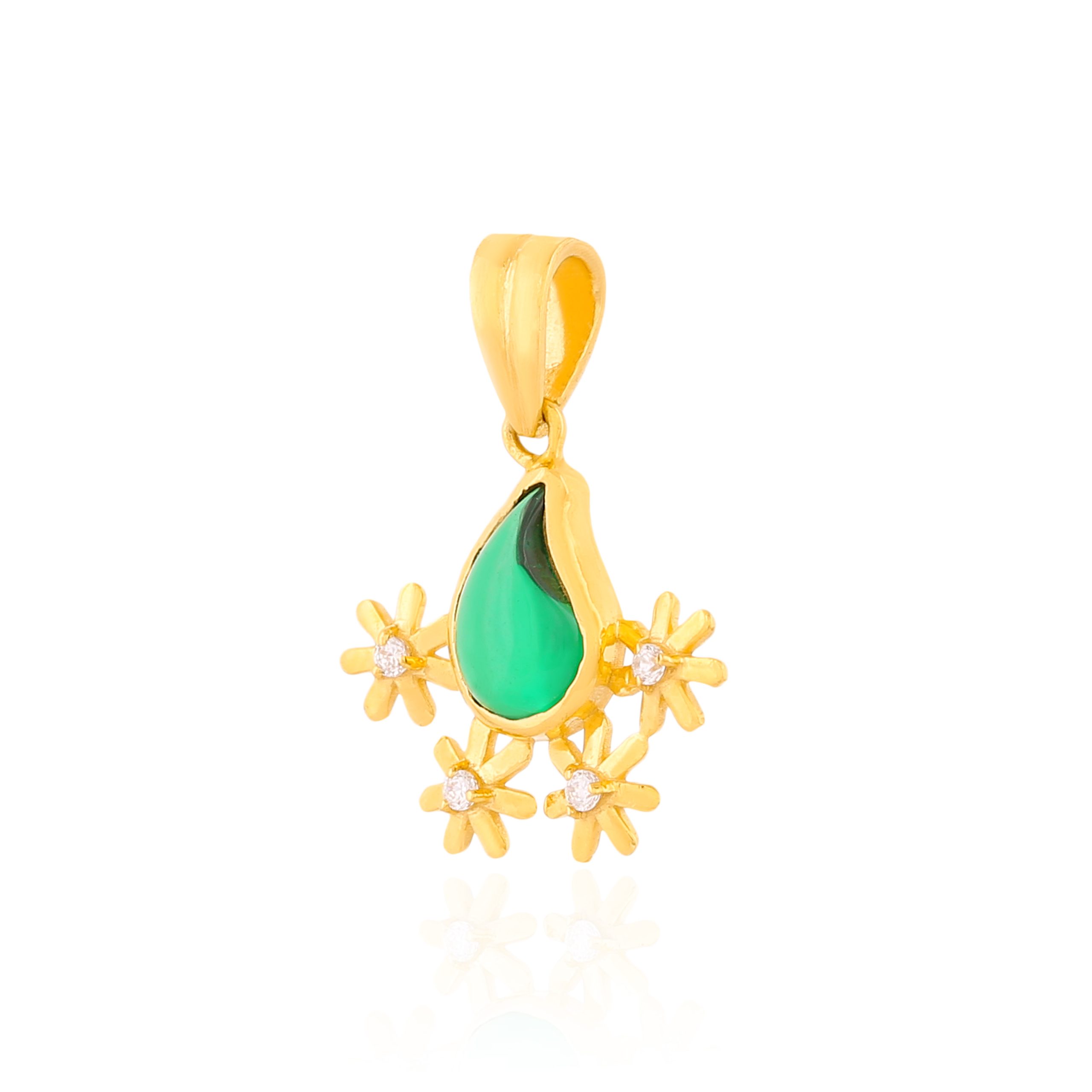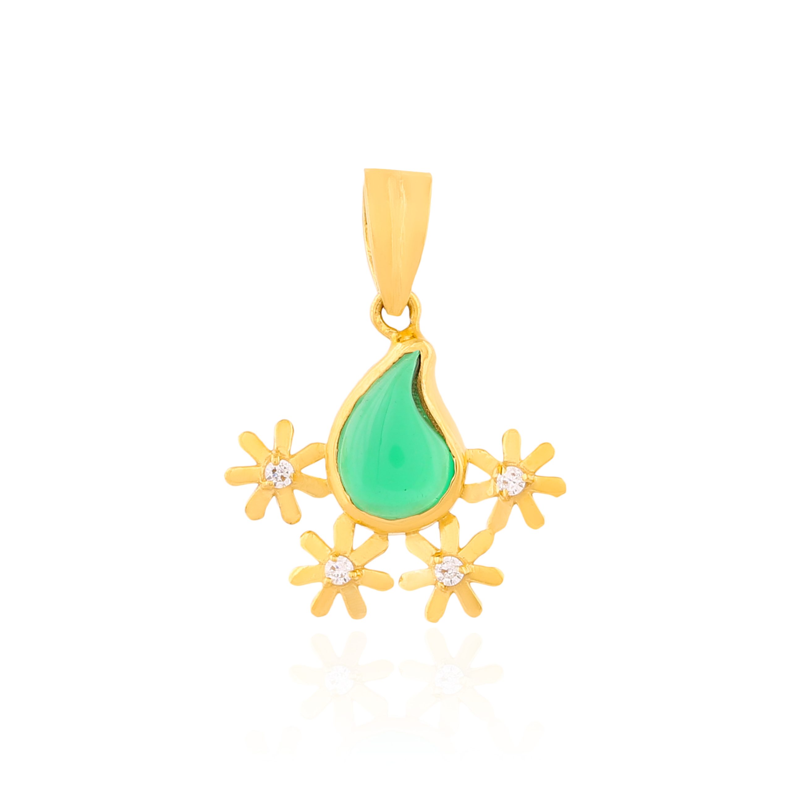 22k Gold Floral Elegance Green Teardrop Pendant For Women