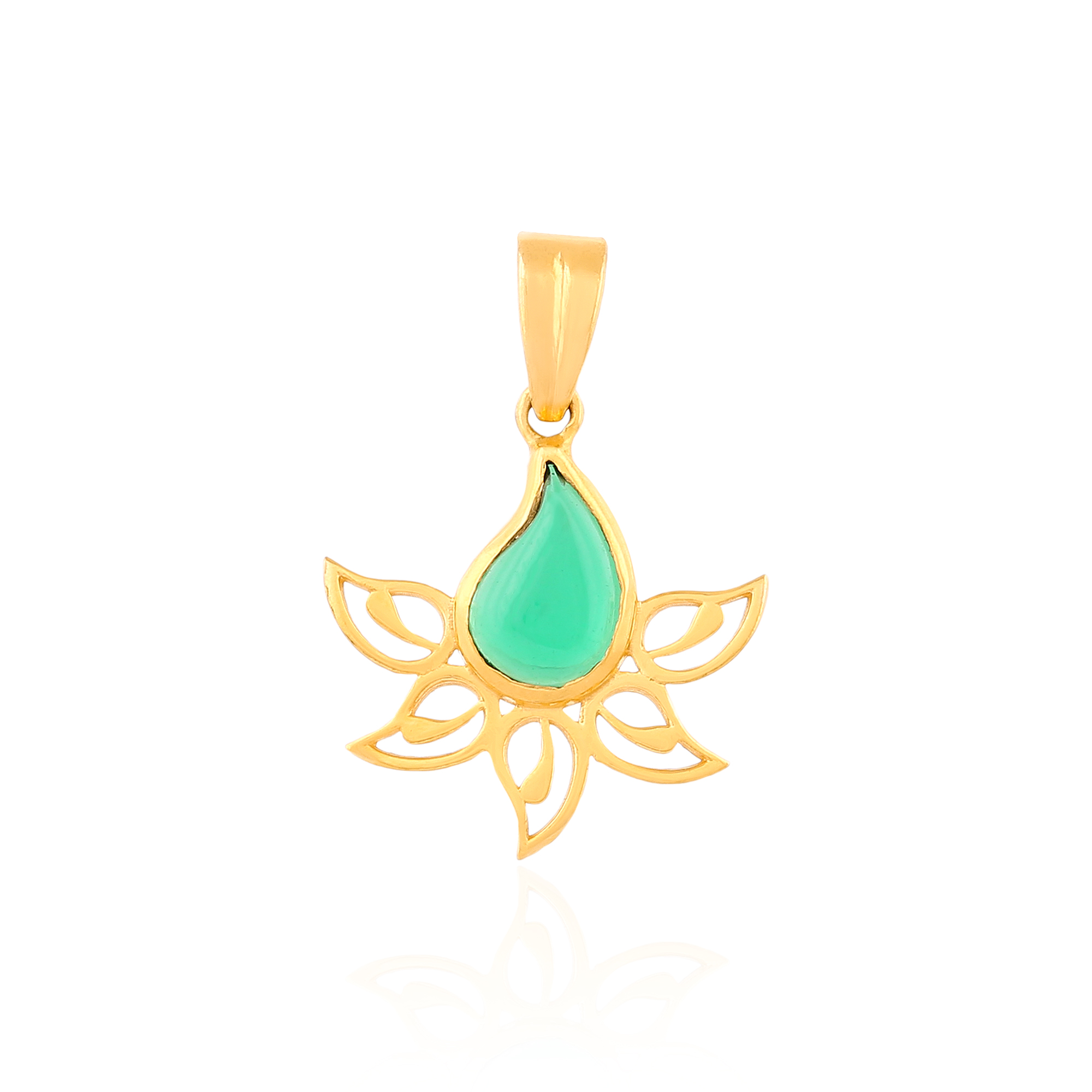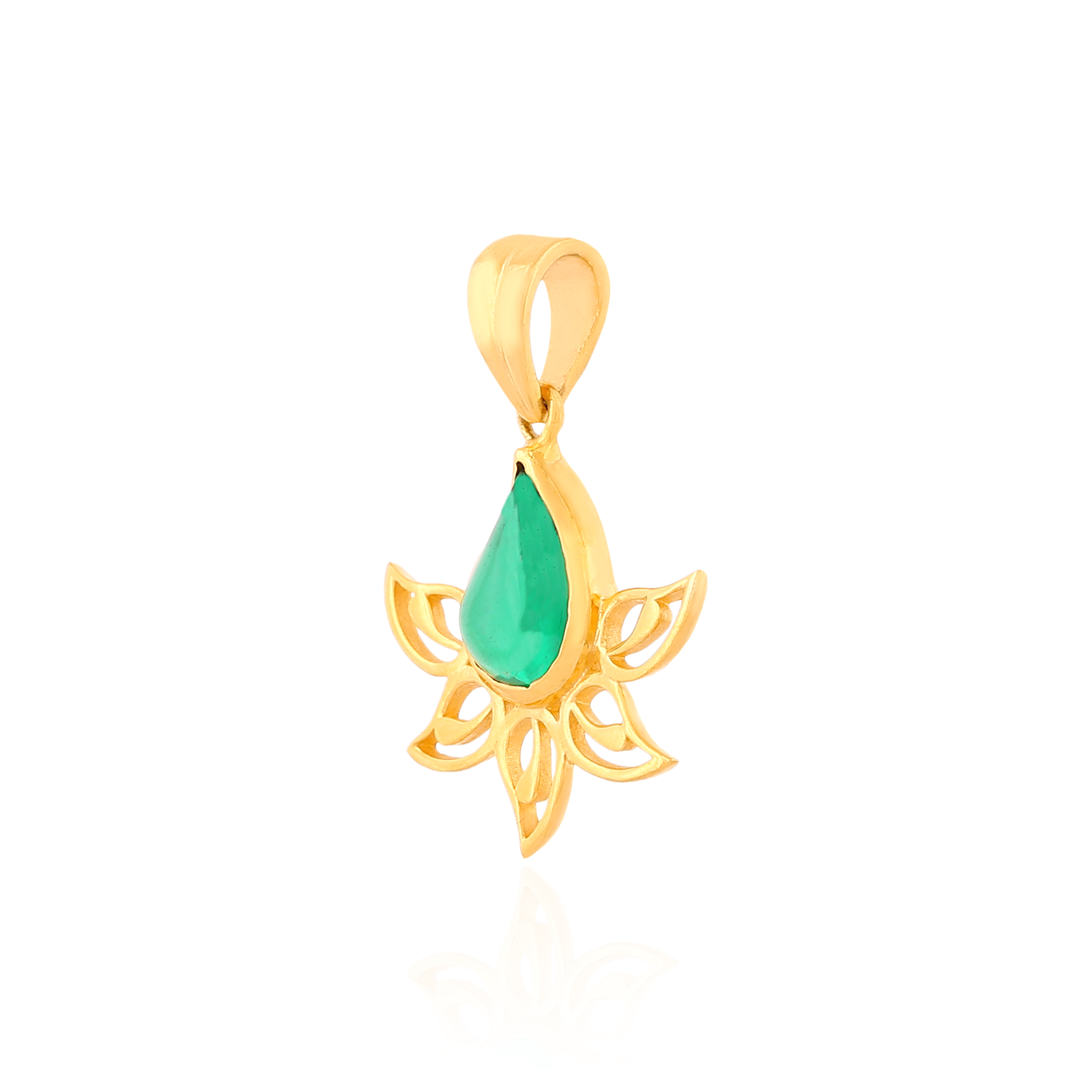 “22K Gold Leafy Bloom Center Emerald Pendant For Women