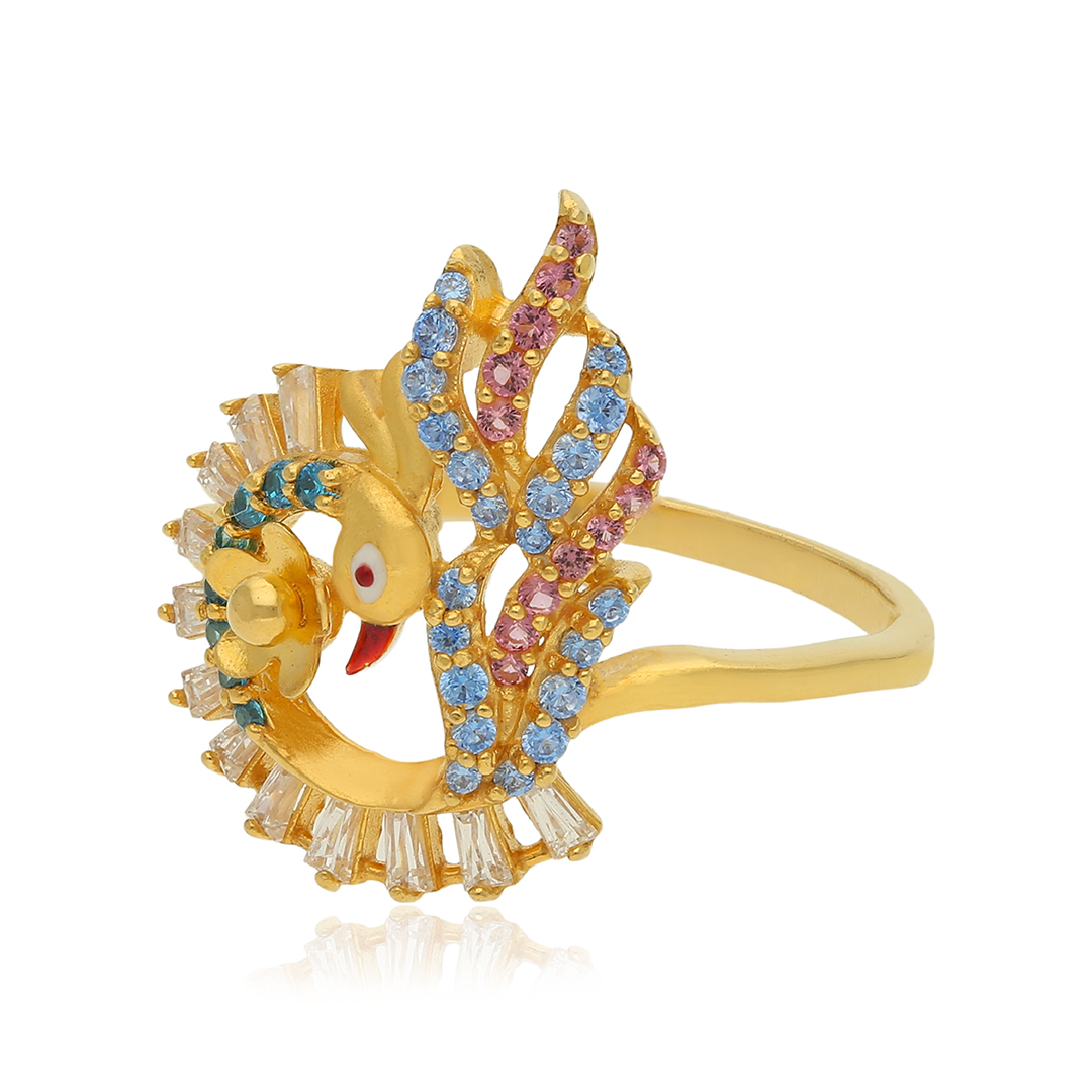 The Exotic Peacock Gold Ring is a stunning piece that captures the vibrant beauty of peacock-inspired design. Perfect for making a bold statement at special occasions or adding a touch of uniqueness to everyday wear, the Exotic Peacock 22 karat Gold Ring celebrates nature’s artistry and individuality, making it a standout piece in any jewellery collection.