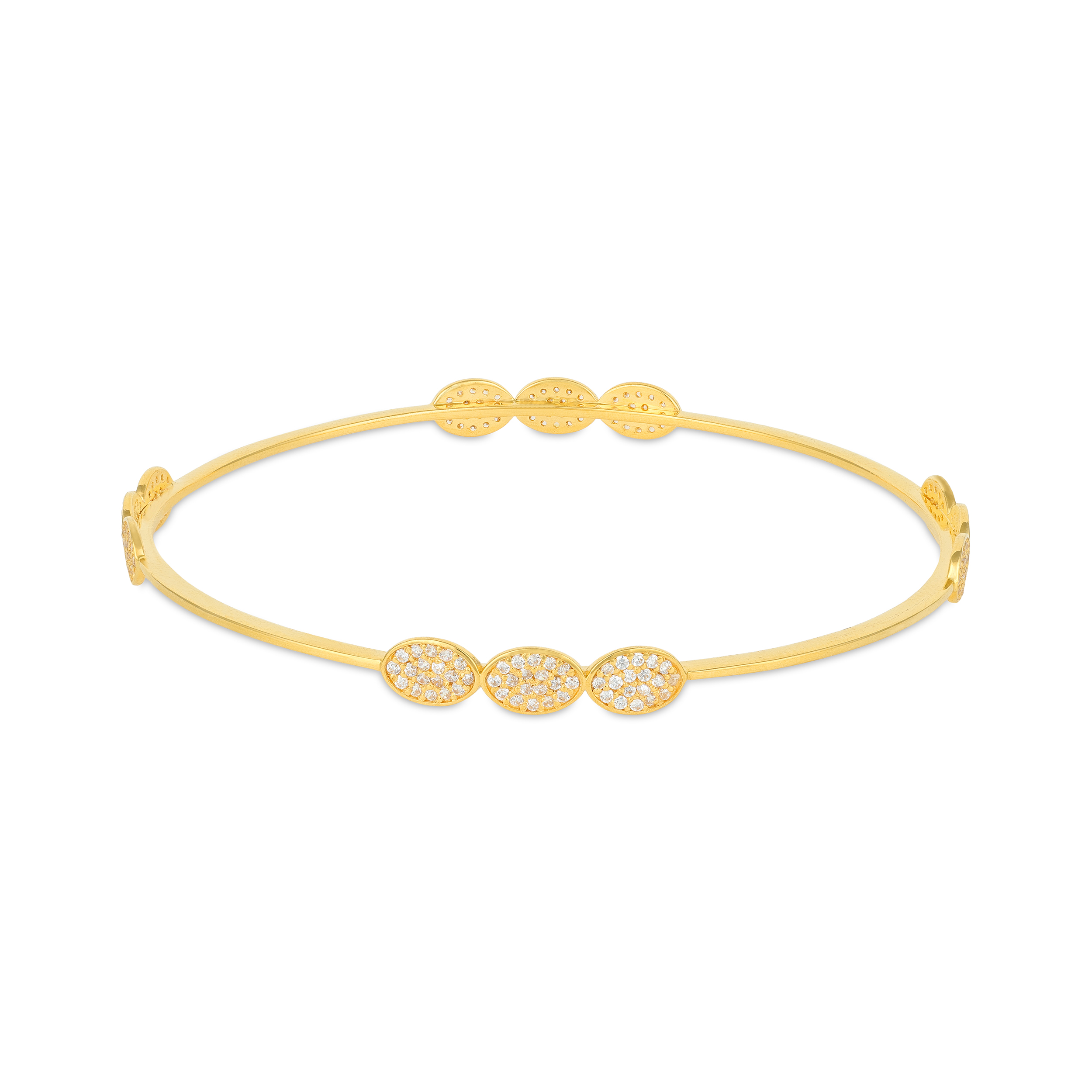 Intricate Pave Oval Segment Yellow Gold Bangle for Women is a stunning blend of sophistication and detailed craftsmanship. Crafted in radiant yellow gold, it features delicately pave-set oval segments that shimmer beautifully with every movement, creating a luxurious, eye-catching effect.