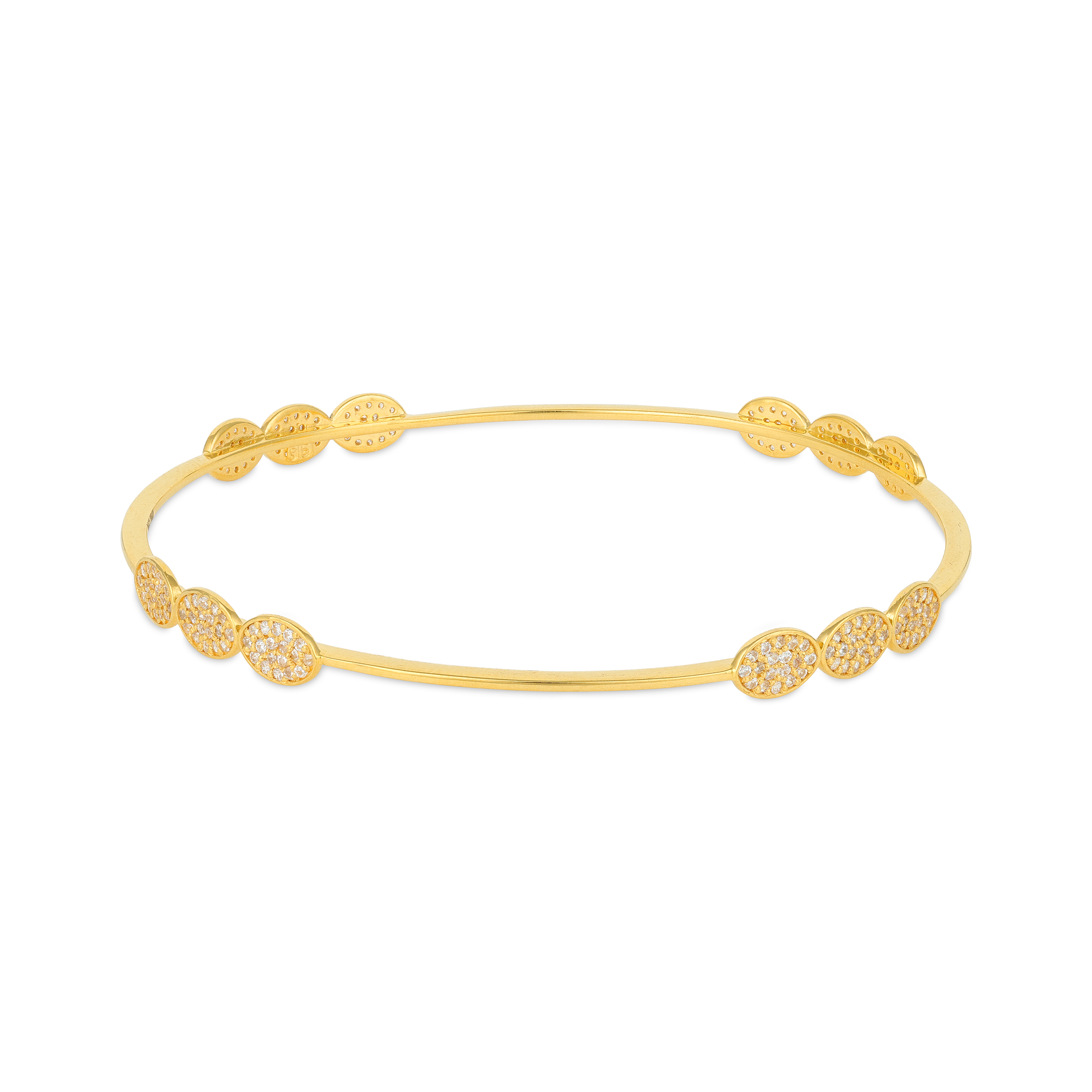 Intricate Pave Oval Segment Yellow Gold Bangle for Women