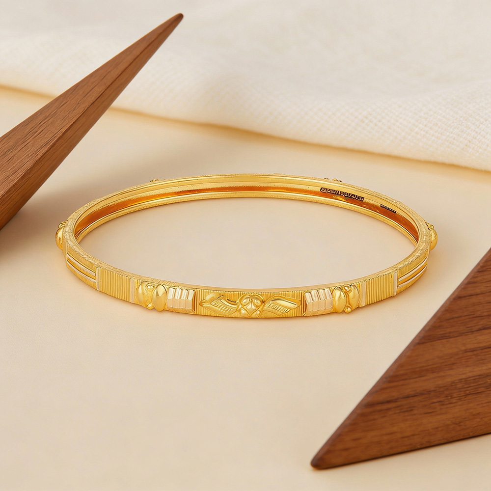 Heritage Ornamental Pattern Yellow Gold Bangle for Women is a timeless celebration of traditional craftsmanship and elegance. Crafted in radiant yellow gold, it features intricately engraved ornamental patterns, creating texture, shimmer, and a heritage-inspired charm.