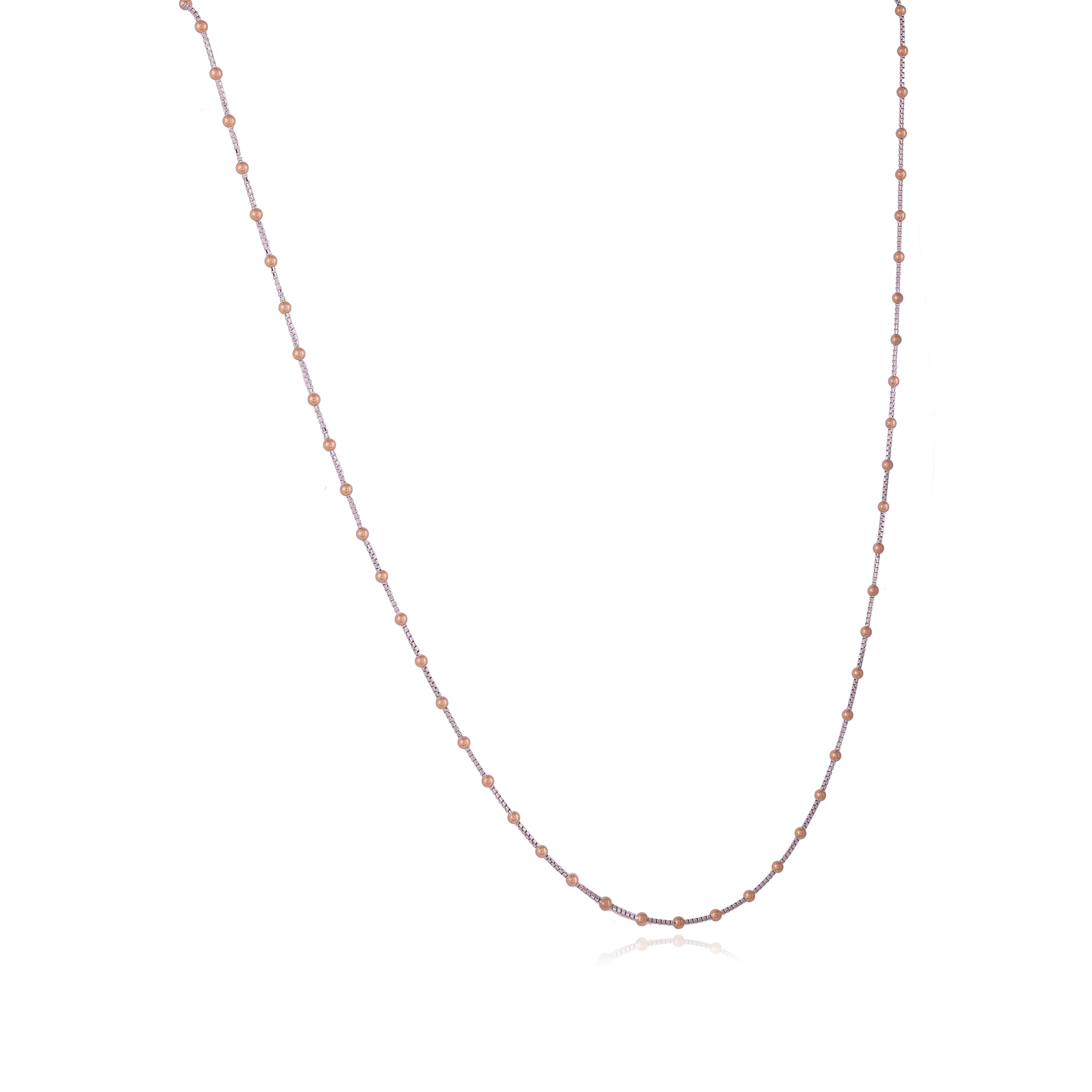 Discover timeless elegance with the Rhodium 18 Karat Golden Bead Rose Gold Chain. Crafted from high-quality 18 karat rose gold and plated with rhodium for an added layer of shine and durability, this chain features delicate golden beads that bring a touch of sophistication and texture to the design. The warm, glowing rose gold beautifully contrasts with the golden beads, creating a luxurious and eye-catching piece that’s perfect for any occasion. Whether worn alone for a subtle statement or paired with your favorite pendant for added flair, this versatile chain is a must-have addition to your jewelry collection.