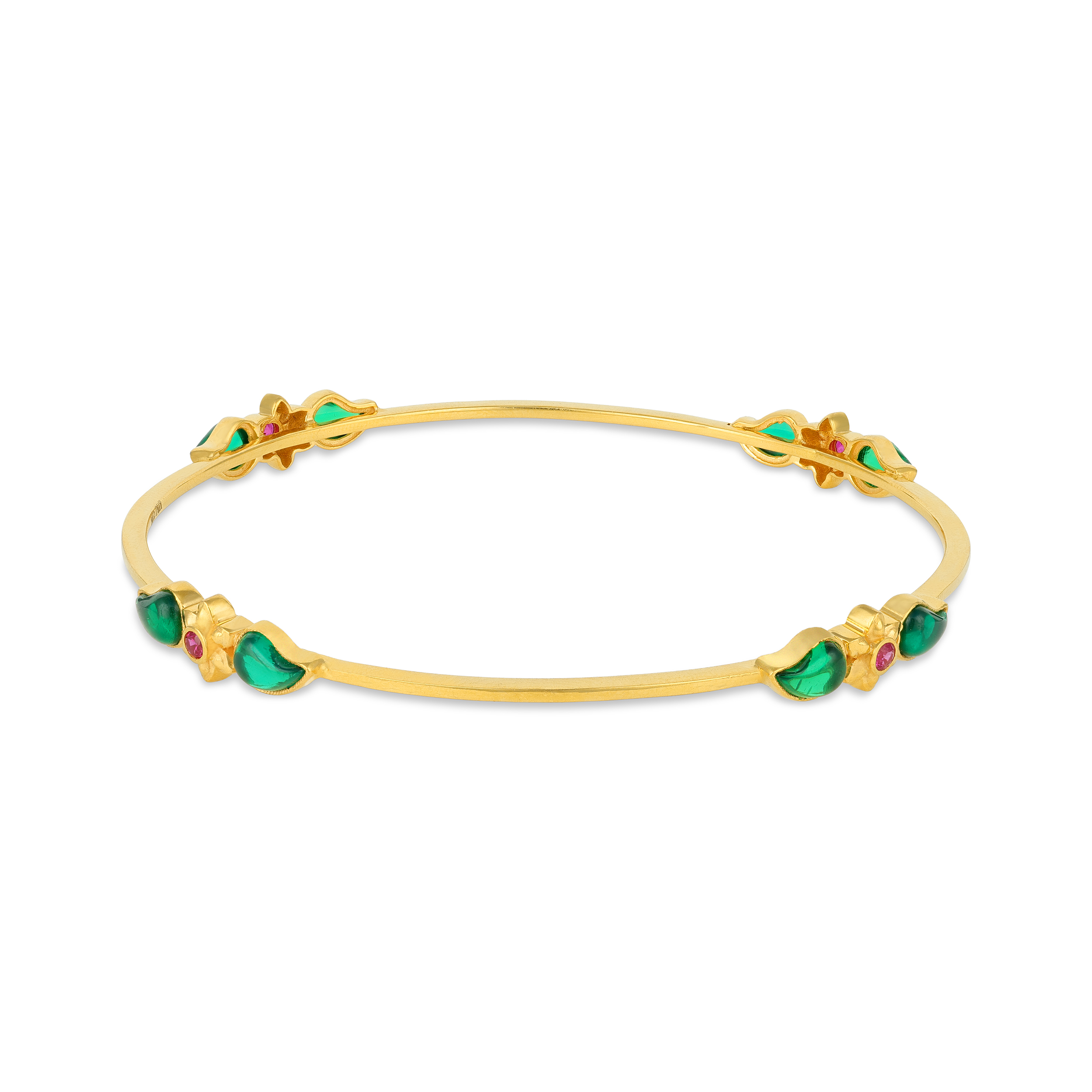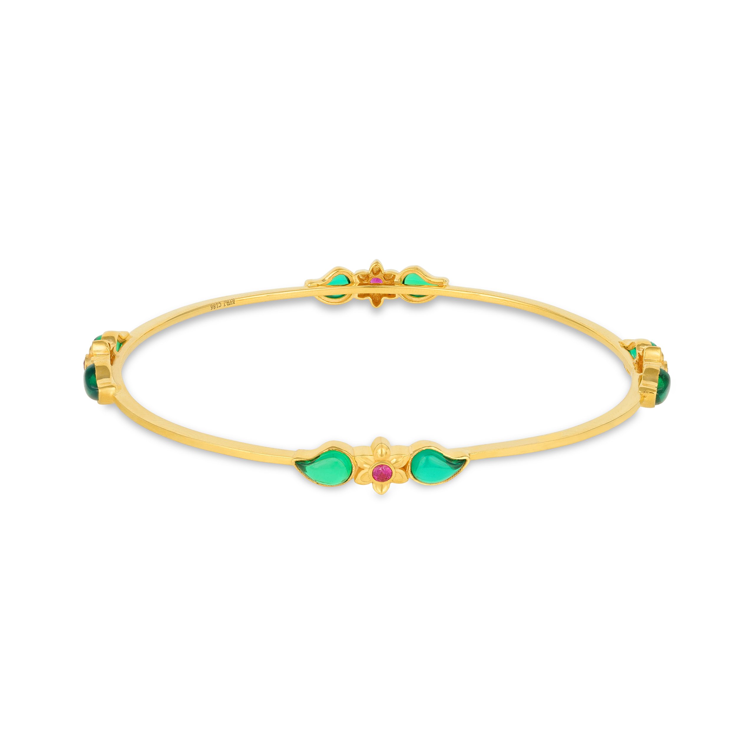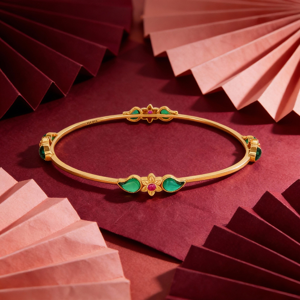 Be the first to review “Ruby Centered Floral Emerald Leaf Yellow Gold Bangle for Women”