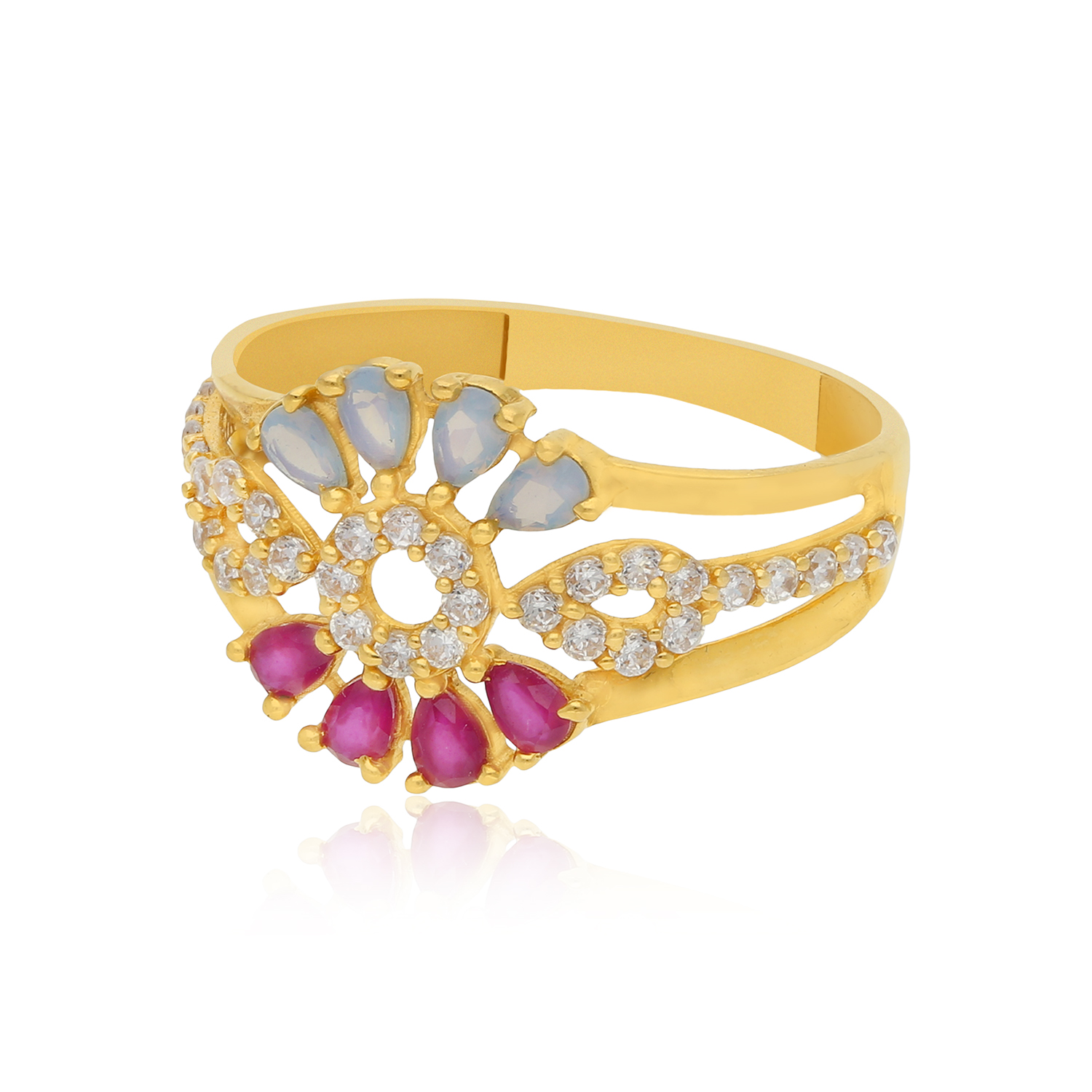 The Dazzling Floral Gold Ring is a radiant piece that combines nature’s beauty with a touch of glamour. Crafted from 22 karat gold, it features exquisite floral motifs adorned with sparkling accents that catch the light beautifully. Perfect for special occasions or elevating everyday outfits, this ring makes a bold statement. Its intricate design adds an element of sophistication to any jewellery collection. Celebrate floral elegance with the Dazzling Floral Gold Ring.