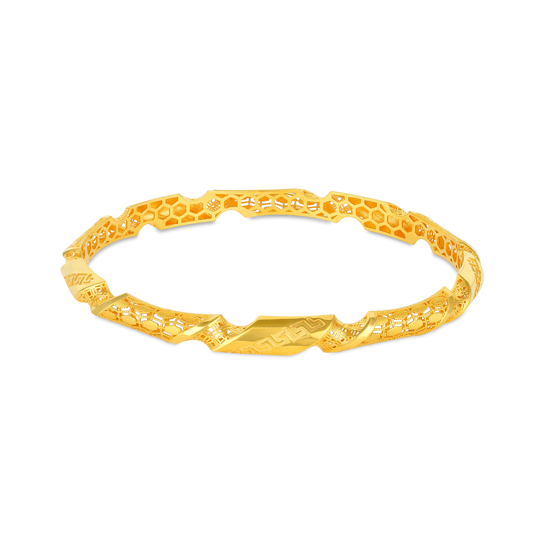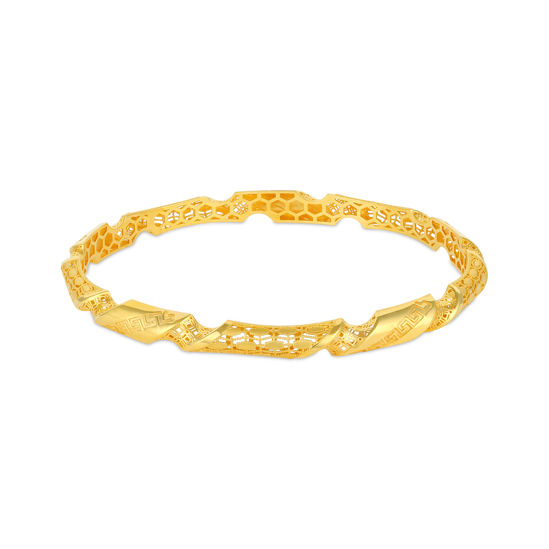 Elegant Twisted Engraved Flat Yellow Gold Bangle for Women