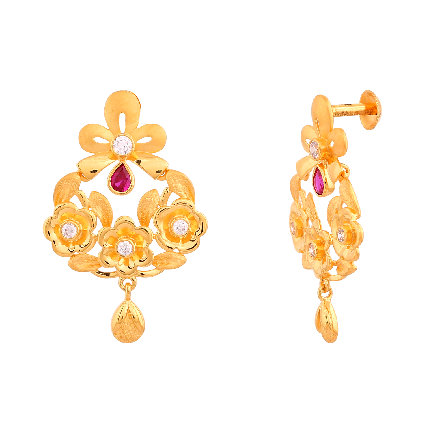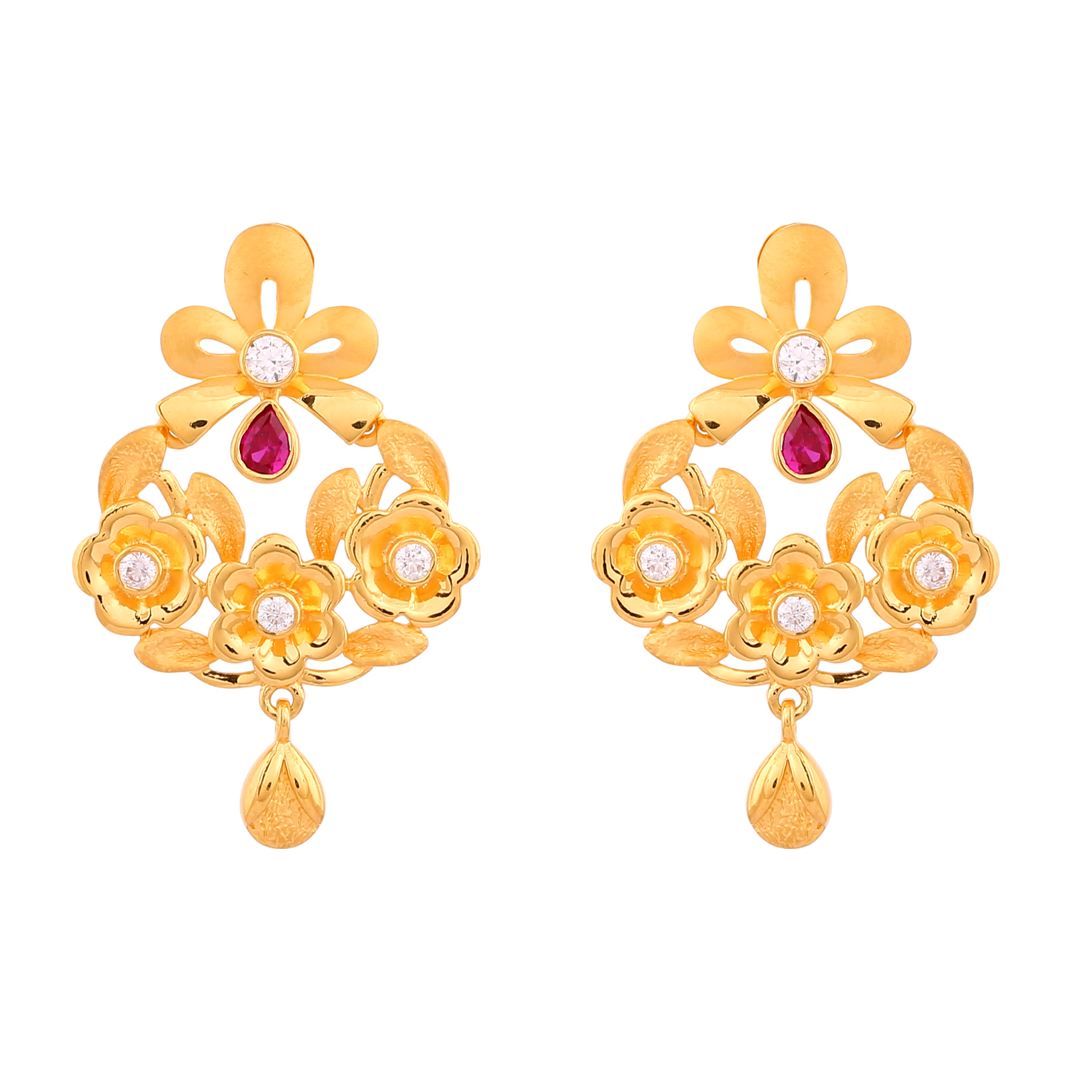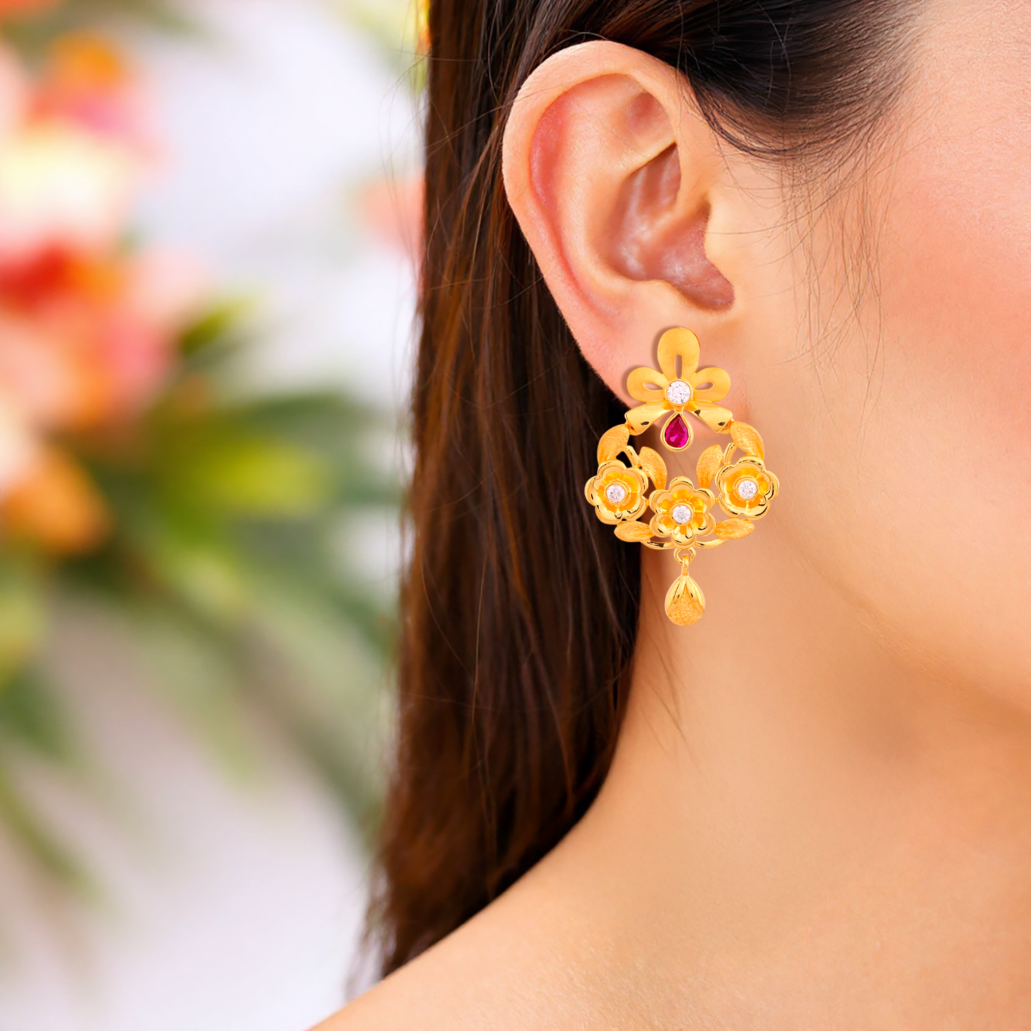 Petal Cascade Chandelier 22KT Yellow Gold Earrings for Women