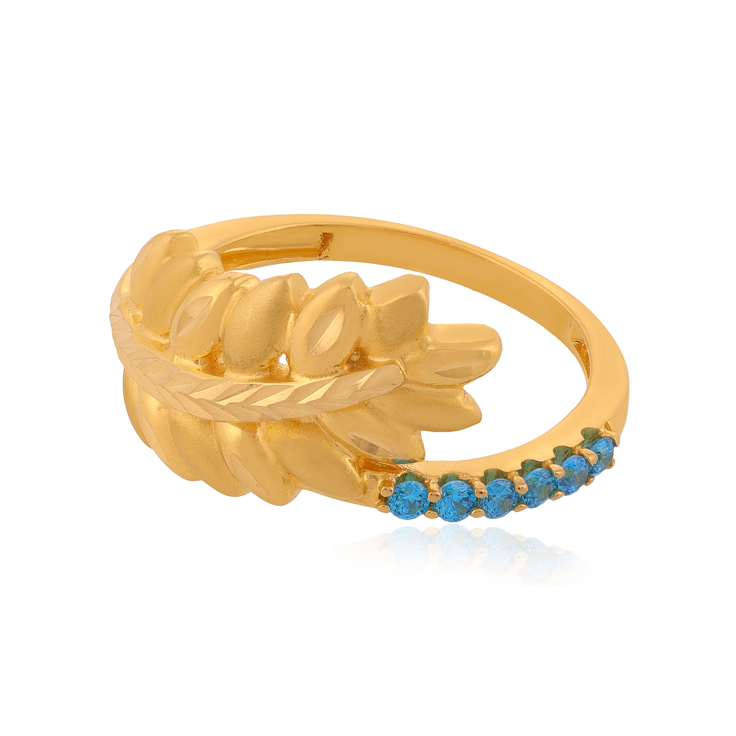 The Radiant Leafy Gold Ring is a stunning piece that celebrates the beauty of nature. Crafted from 22 karat gold, it features delicate leaf motifs that gracefully wrap around the band. The polished finish enhances its radiant shine, making it perfect for both every day wear and special occasions. This ring combines elegance with a touch of whimsy, adding a fresh and vibrant look to any outfit. A lovely addition to any jewellery collection, it’s ideal for nature lovers and those who appreciate intricate designs.