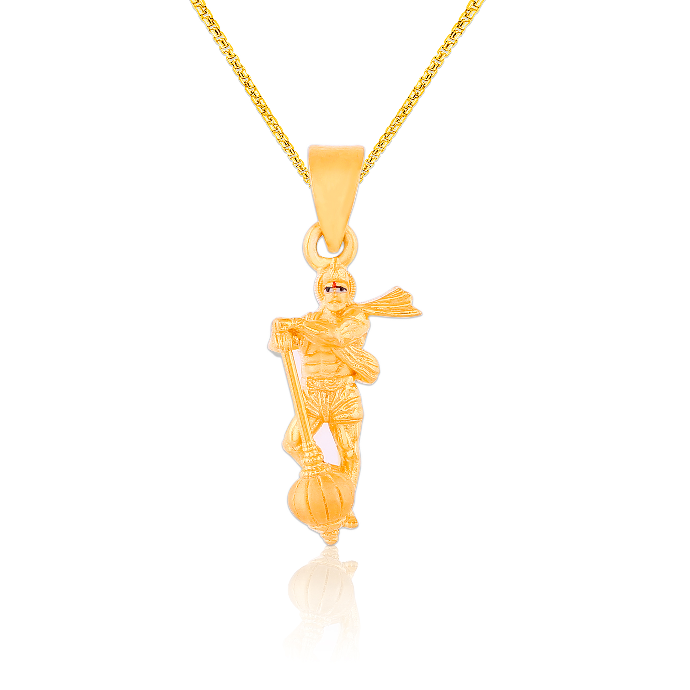Radiating strength and devotion, the 22K Gold Sacred Hanuman Pendant showcases the revered deity in a powerful stance. Crafted with divine detailing, it symbolizes courage, loyalty, and unwavering faith. The rich gold tones enhance its spiritual aura, making it a meaningful piece for daily protection. A blend of tradition and purpose, it speaks to the soul of the wearer. Pair it with a simple chain and traditional kurta or dhoti for a bold devotional look.”